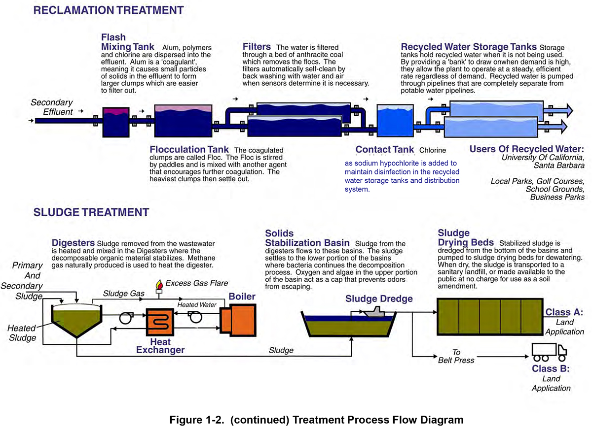 In September of 2013, the Goleta Sanitary District completed a major upgrade to its treatment facility and is now a full secondary treatment plant. The District was issued a new NPDES permit in 2017 to match the upgraded plant treatment capability. Through the secondary treatment process, the District produces a higher quality effluent that protects the environment and public health. This means purer and clearer water is being discharged to the ocean, and new air quality treatments are ensuring cleaner air. New treatment technologies adopted in 2020 allow us to improve the treatment process saving time and money, while better protecting the environment.